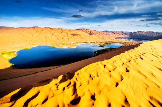 沙漠之中的湖泊,云天相连