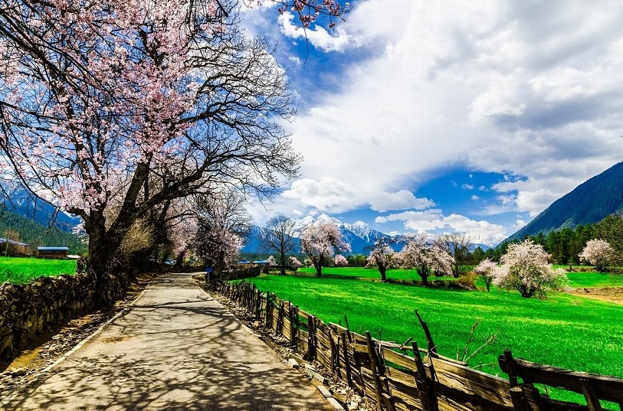 林芝嘎啦桃花村是3月赏桃花的首选之地。尼洋河两岸的山坡上,桃林与麦田交相辉映;三面环山的林芝桃花沟,溪水从山顶倾泻而下,涧边长满了野生桃树,只可远观不可近玩。